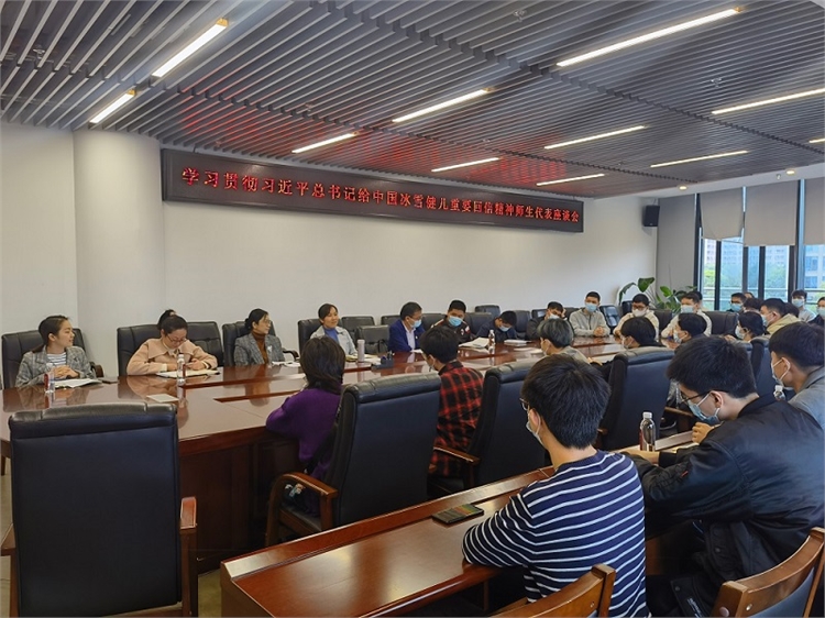 中共中央总书记、国家主席、中央军委主席习近平于2月24日给中国单板滑雪运动员苏翊鸣回信,向他和中国冰雪健儿取得优异成绩表示祝贺,并提出殷切期望。3月23日下午,学校党委学生工作部组织召开师生代表座谈会,认真学习习近平总书记重要回信精神,来自全校26个学院的40名师生代表结合自身学习、工作,畅谈体会感想,大家纷纷表示,一定牢记习近平总书记的殷切期望和谆谆教诲,心系祖国,志存高远,脚踏实地,在奋斗中创造精彩人生。