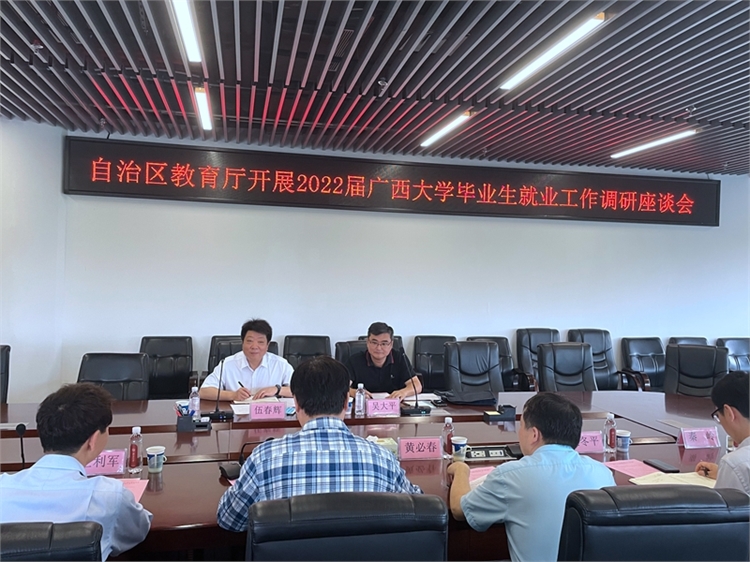 4月12日,自治区教育厅副厅长伍春辉一行到校开展2022届高校毕业生就业工作调研。副校长罗廷荣,学生工作部(处)负责人和学院党委副书记及辅导员代表参加了调研座谈会。