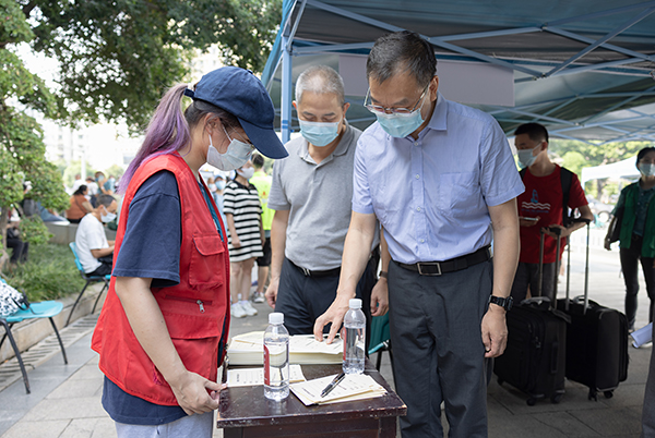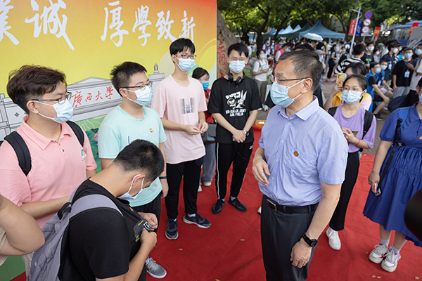 “大家辛苦了”,在南大门迎新现场,韩林海亲切问候工作人员。他仔细检查了新生入校行李消杀、体温检测、信息核验以及交通疏导等工作,一一询问检查迎新现场疫情防控措施落实情况,要求有关部门和工作人员热情周到、解决好新同学的实际困难,做实做细迎新服务工作。