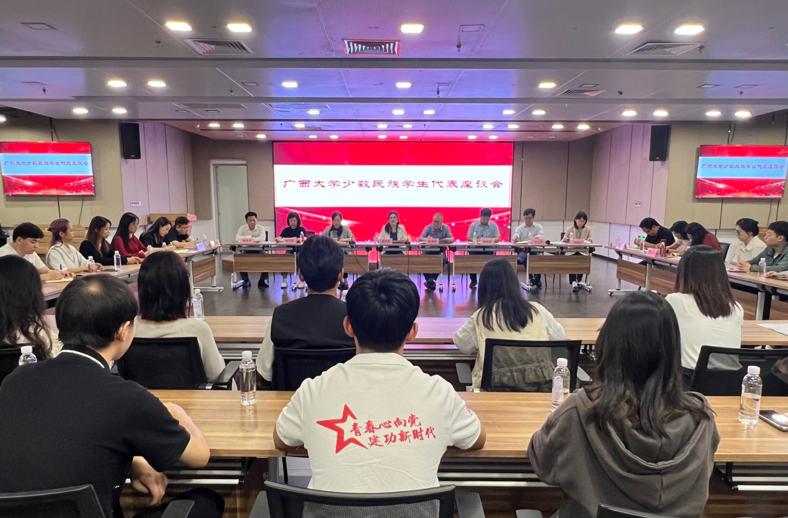 为深入学习贯彻党的二十大精神,学习贯彻习近平新时代中国特色社会主义思想主题教育走深走实,进一步了解少数民族学生思想、学习、生活情况,助力学生成长成才,5月12日上午,太阳集团2138在大学生活动中心召开少数民族学生代表座谈会,党委统战部、学生工作部(处)、武装部、国有资产与实验室管理处相关负责人、新疆内派教师、各民族学生代表40余人参加座谈会。