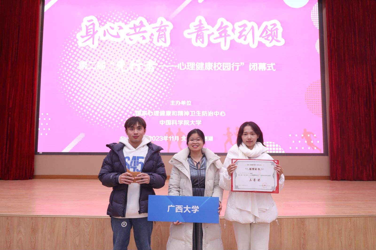11月24-26日,由国家心理健康和精神卫生防治中心联合中国科学院大学共同举办的第二届“先行者—心理健康校园行”风采展示活动在北京中国科学院大学(雁栖湖校区)举行。本次活动展示有来自全国43所高校100多位师生参与。