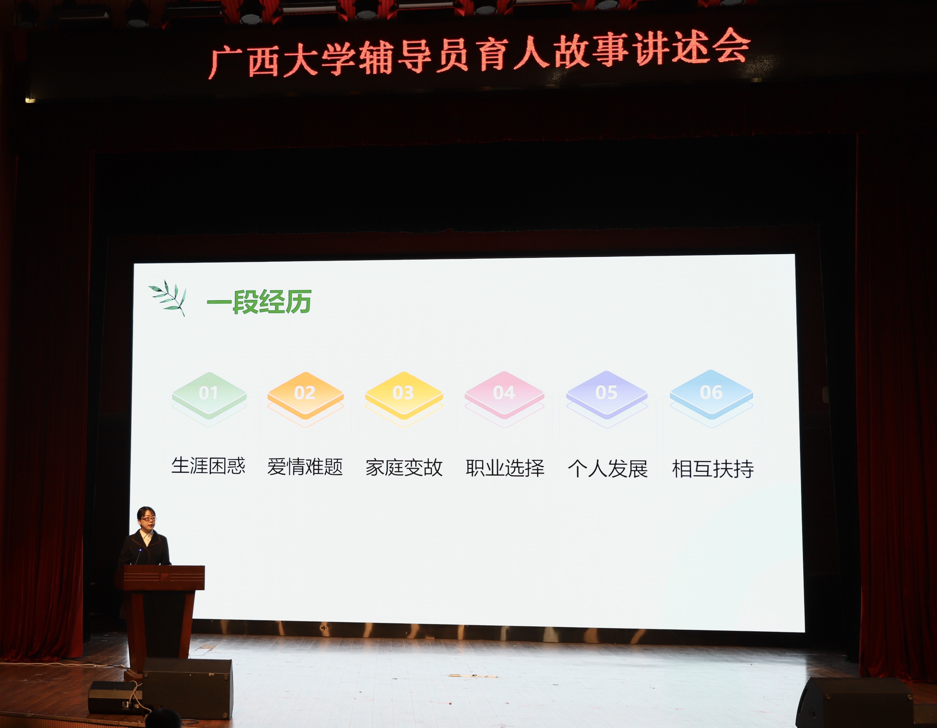 讲述会上,来自各学院的9名辅导员围绕亲身经历,从一个个真实案例出发,由点及面地讲述了自己在课程育人、实践育人、管理育人、服务育人、文化育人、组织育人、网络育人、心理育人、资助育人等九个方面的育人故事,分享了自己在思想政治教育领域的工作心得,抒发了自己对教育事业的热爱。