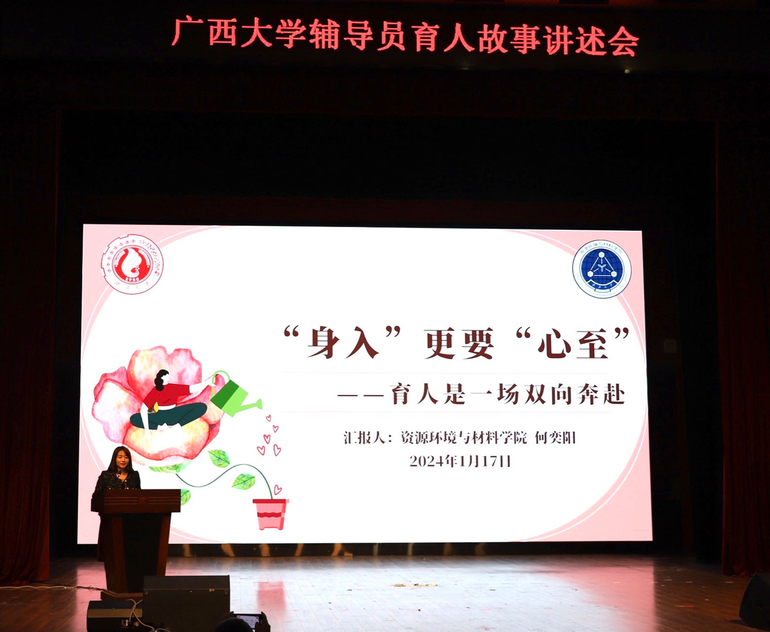 资源环境与材料学院辅导员何奕阳以《“身入”更要“心至”—育人是一场双向奔赴》为题讲述育人故事