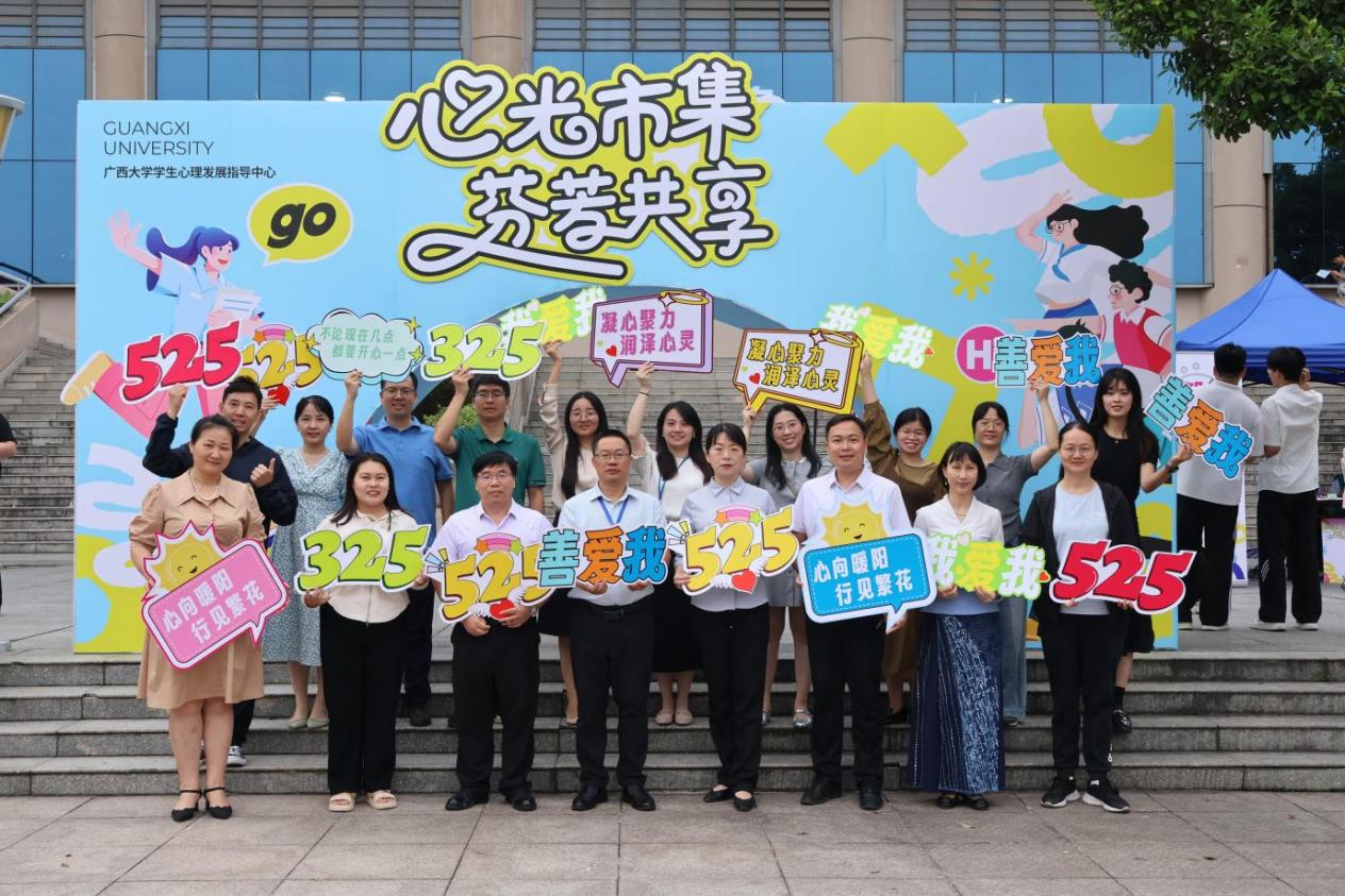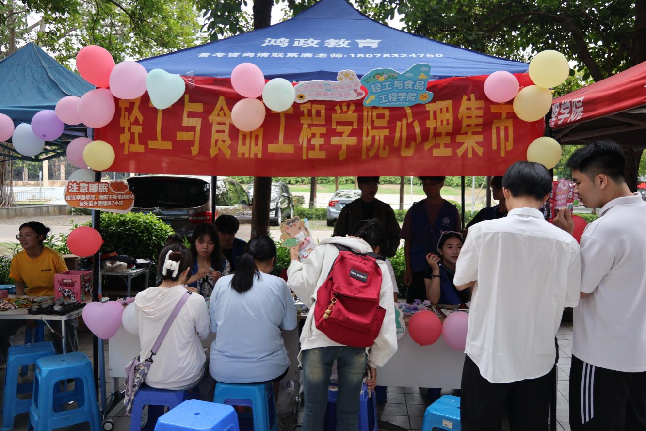 5月25日下午,太阳集团2138心理健康教育品牌活动——“心光市集·芬芳共享”心理集市在西体育馆外举办。活动由校学生工作部(处)主办,学生心理发展指导中心承办,学生工作部(处)部(处)长谢能重、副部(处)长陈卉娟、心理中心全体专职教师、各学院辅导员参加活动。本次心理集市通过趣味互动、艺术疗愈与心理健康科普相结合的形式,吸引了师生近千人次参与,广西电视台做了专题报道。