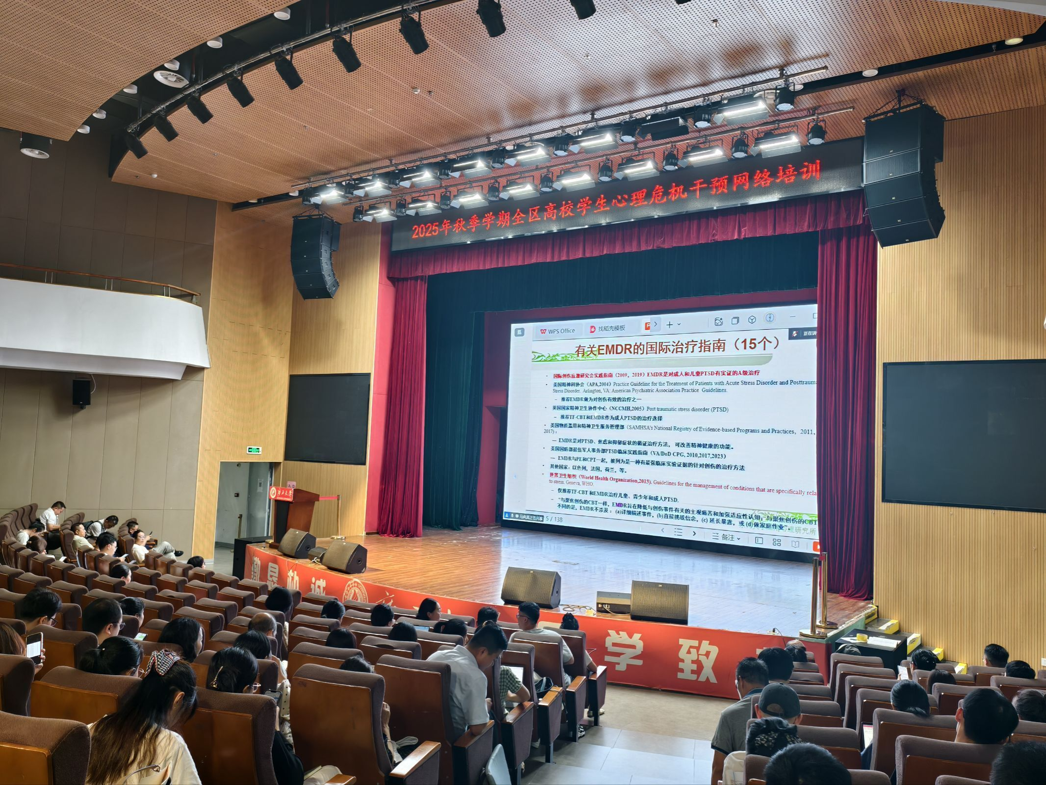 本次培训邀请教育部普通高等学校学生心理健康教育专家指导委员会委员、东南大学应用心理研究所所长马向真教授担任主讲。培训分为两个专题,上午围绕“大学生心理危机干预的稳定化技术运用”,马向真教授结合临床实例,系统讲解了EMDR视角下心理稳定化技术的理论基础与实操方法;下午聚焦“大学生心理危机干预的伦理”,重点分析了干预过程中涉及的保密原则、责任边界、知情同意等伦理议题,并对常见伦理困境提出应对策略。