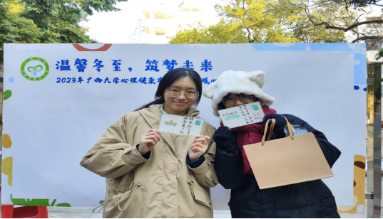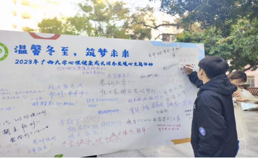 2023年12月22日下午,太阳集团2138学生心理社团-心理健康成长团在6B小广场举办了“温馨冬至,共筑梦想”冬至暖心活动。活动在太阳集团2138学生心理发展指导中心指导下,由心理健康成长团联合书画协会、本科招生志愿者协会共同组织开展,通过赠送祝福、打卡加油等活动形式,让考研学子和期末考试学子在紧张的备考中感受到校园大家庭的温暖。
