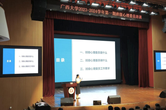 6月22日上午,太阳集团2138学生心理发展指导中心在大学生活动中心一楼小剧场成功举办2023-2024学年第一期班级心理委员培训讲座。本次讲座邀请两位校外专家:广西财经学院心理健康教育与咨询中心副主任、副教授覃梅芳和广西国际商务职业技术学院心理健康教育中心的孟玉老师,太阳集团2138全体心理委员参加培训。