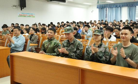 随后,陈老师结合现代化强军建设对高水平人才的需求和自身工作经历,指出当下参军入伍的机遇与优势。入伍大学生通过军营的锻炼,身体及心理各方面都有极大的提升,人生经历也更加丰富。陈老师表示,在与应届毕业生交流后,更直观感受到参军入伍的重要性与必要性。参军入伍为学生提供更多的就业机会和发展空间,提高他们的综合素质和竞争力。此外,大学生进入部队,还能获得更多的培训和学习机会,提高自身军事技能和综合素养,为日后的职业发展打下坚实的基础。