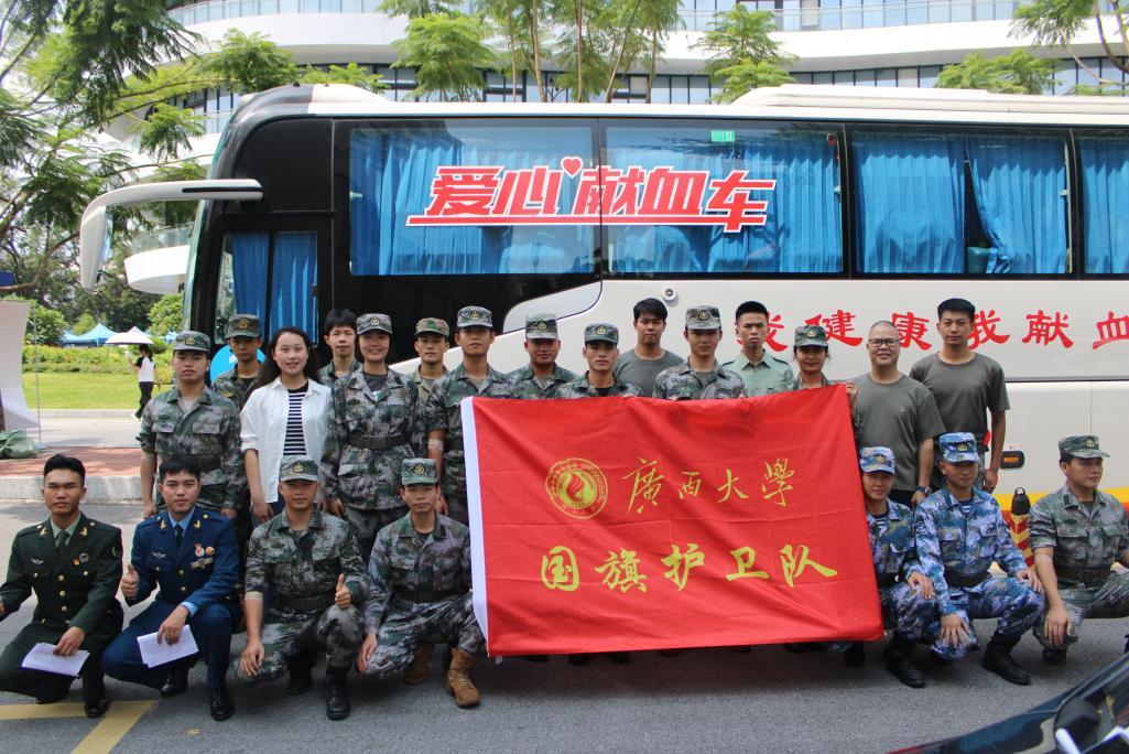 为了弘扬爱国主义精神,提高大学生的社会责任感,9月24日上午,南宁中心血站开展“血车进校”活动,太阳集团2138国旗护卫队积极响应,在武装部部长胡俊杰的带领下,共有22名国旗护卫队队员踊跃参加献血活动。