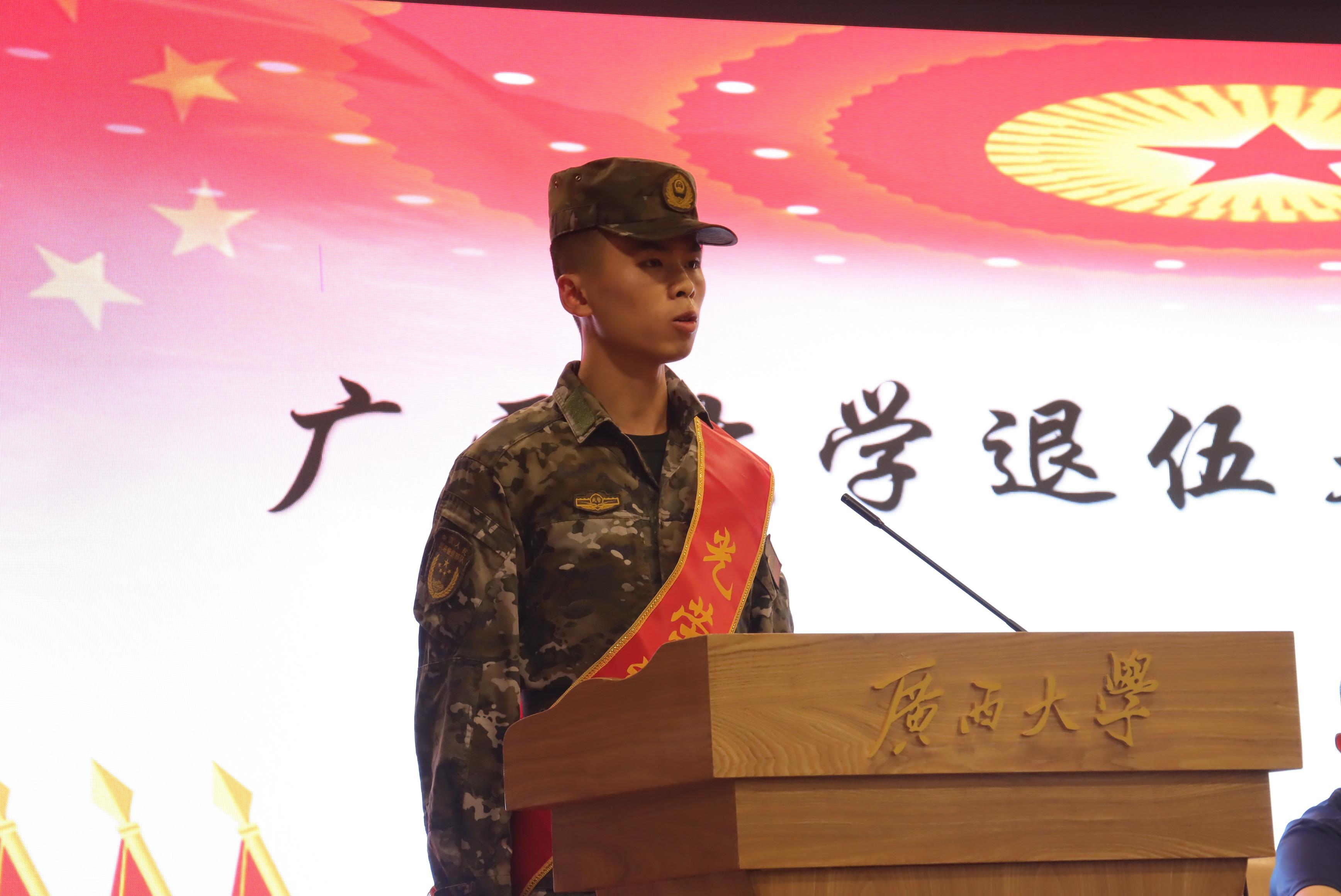 (退伍大学生代表吴思滔发言)