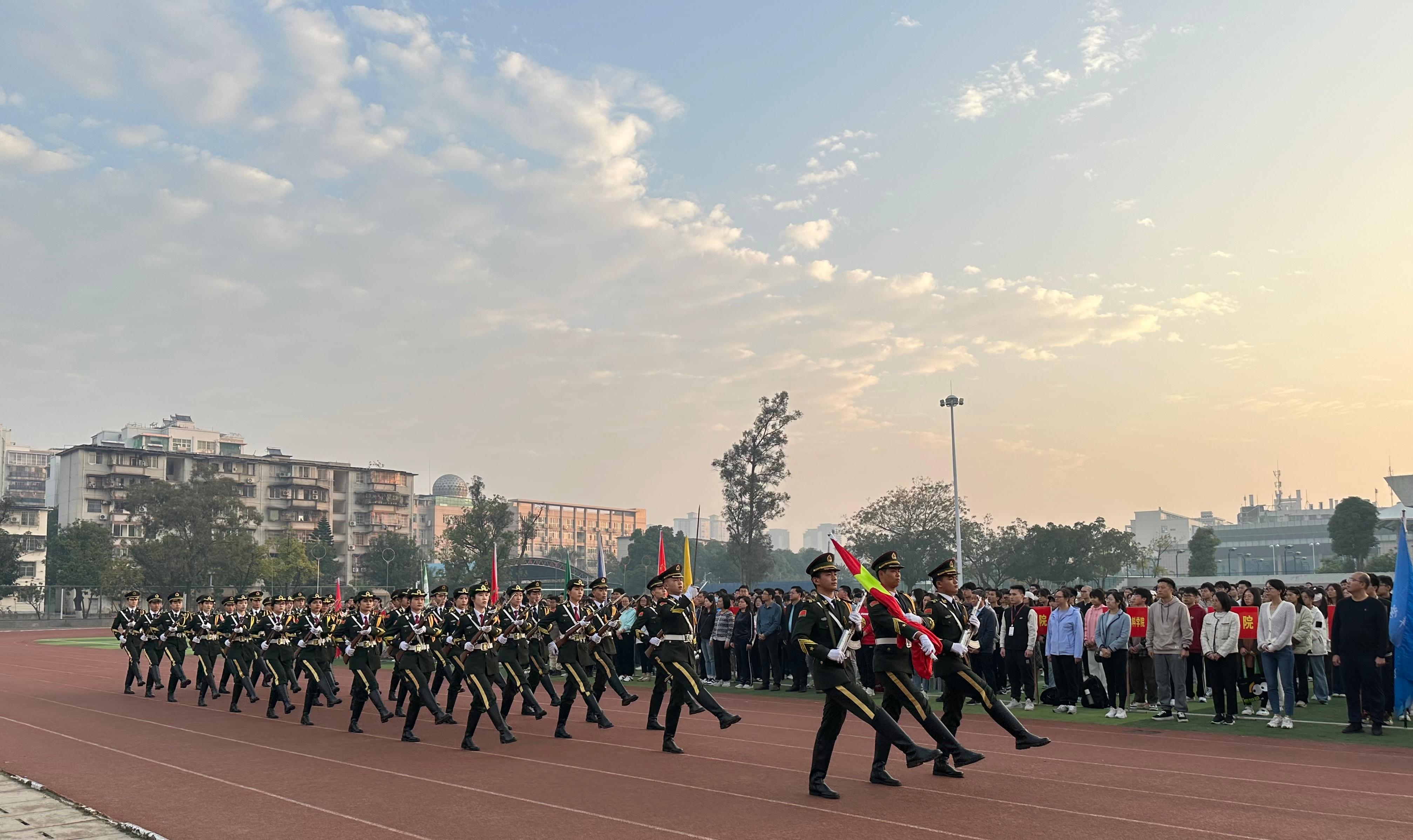 升旗仪式后,物理科学与工程技术学院硕士研究生徐靖桓作为学生代表发言:他呼吁每一个西大学子要扛起时代赋予的重任,扎根学习和科研,筑牢专业能力的坚实地基,以实际行动建功新时代,为壮美广西上贡献青年力量,奋力谱写广西篇章!
