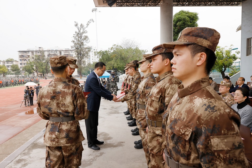 武警广西总队南宁支队参训部队代表、军训学生代表依次发言,表达了全力以赴开展军训工作的信心和决心,随后,进行授旗仪式。此次军训为期14天,将于1月26日结束。