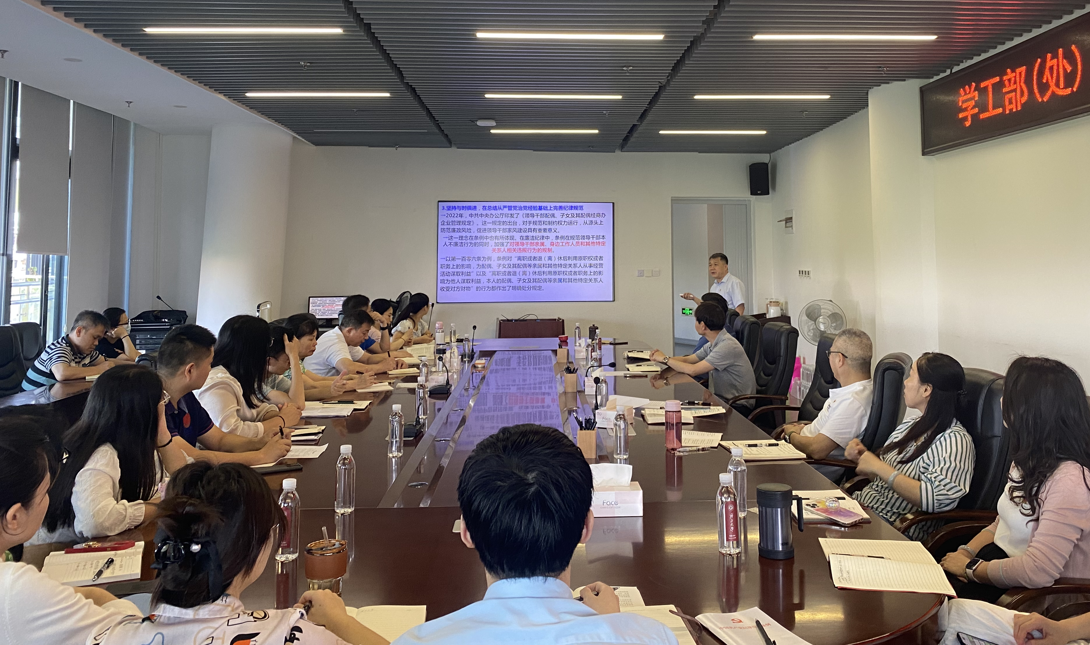 学生工作部(处)部(处)长黄必春以《<中国共产党纪律处分条例>学习体会》为题,围绕《中国共产党纪律处分条例》修订原因、具体修订条款、修订后的突出特点等方面进行讲课。